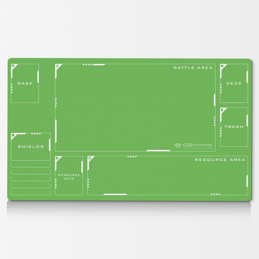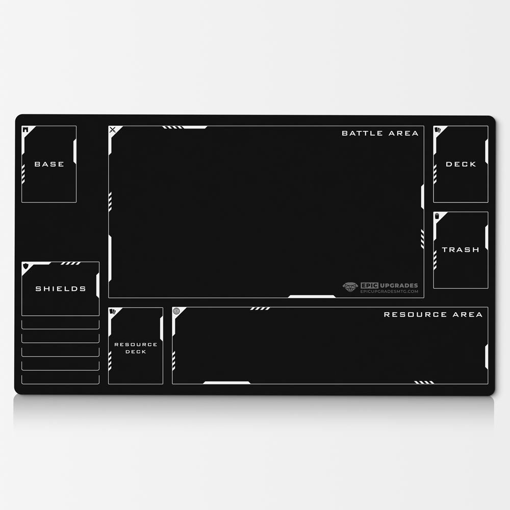 This minimalist Gundam playmat is designed for players who prefer a clean, functional layout over flashy artwork. With clearly marked zones for base, deck, trash, battle area, shields, resource deck, and resource area, it keeps your board organized for focused, distraction-free gameplay.